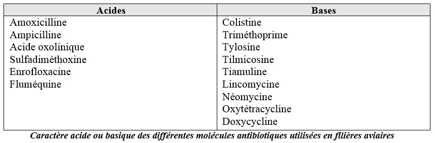 Les spécialités à base d’oxytétracyclines et de triméthoprime qui sont des bases précipitent dans l’eau basique. Il est possible de diminuer le pH de l’eau en y incorporant de l’acide citrique ou en utilisant un solubilisant acidifiant.